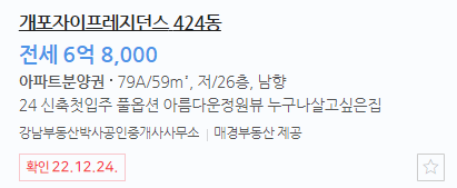 단순히 부동산포털에서 최저가로 해서 본것이니 참고만해주세요.