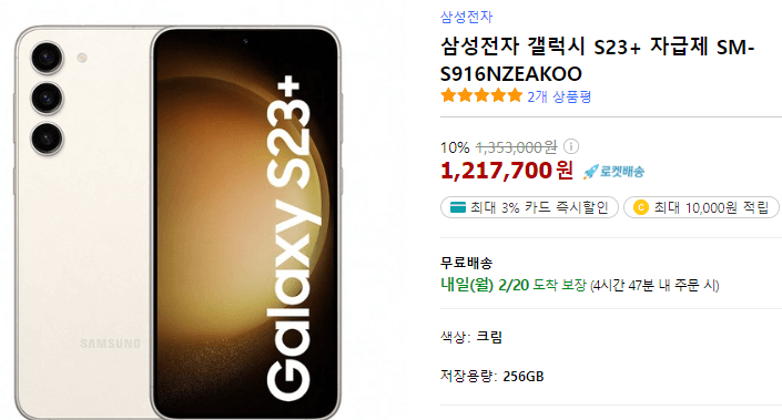 갤럭시 S23은플러스 135만3000원135만 3000원, S23울트라 159만9400원으로 출고가가 모두 100만 원이 넘습니다. 각 사이트별로 카드할인, 특별할인 가격이 있으니 꼼꼼히 비교해 보세요.