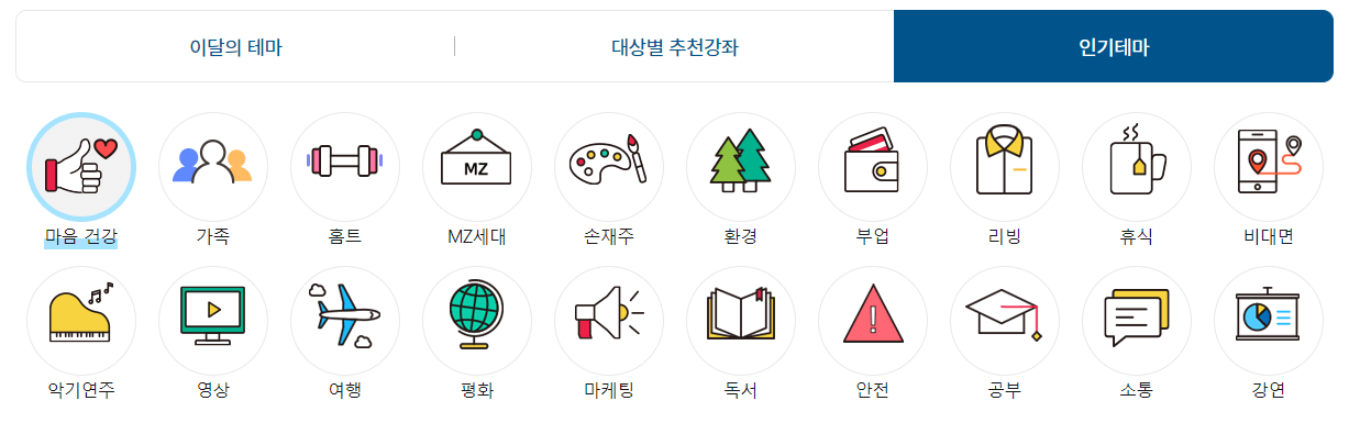 ✔카테고리, 연령별로도 나누어서 원하는 강좌를 검색하기도 쉽고요.