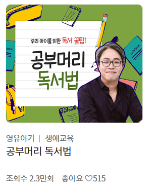 정말 다양한 강의가 있습니다. 부동산계약 시 유의할 점부터 역사, 경제, 육아, 재테크, 취미생활, 창업 등 정말 다양한 카레고리의 강좌부터 오은영 박사님, 김경일교수님, 공부머리독서법의 최승필작가님 등 정말 유명한 분들의 강의가 있습니다.