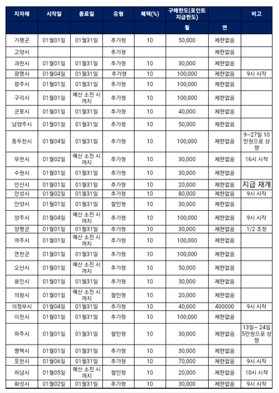 설연휴 맞이하여 특별할인으로 진행되는 10% 할인 종료일은 2023년 1월 31일까지 또는 소진시까지 이오니 각 시·군별로 다르니 자세한 사항은 아래에 2023년 1월 경기지역화폐 할인 안내표를 참고하시기 바랍니다.
