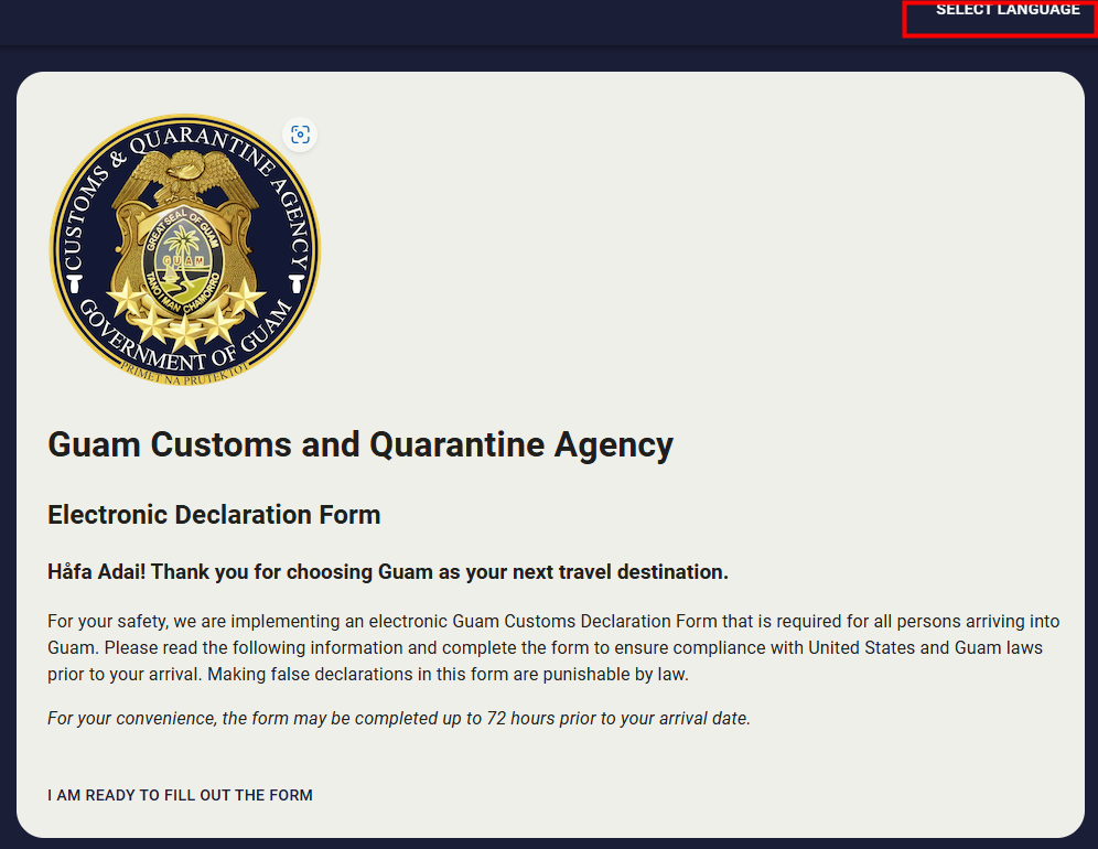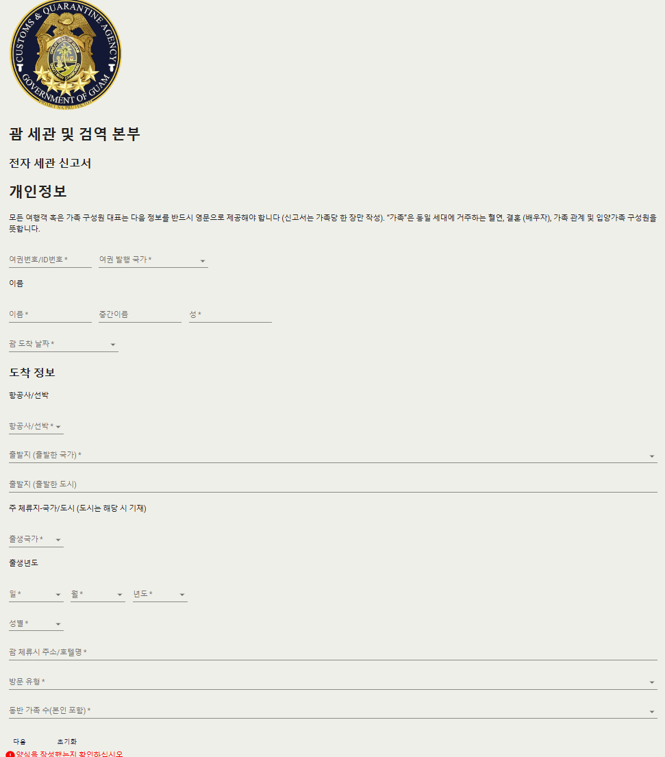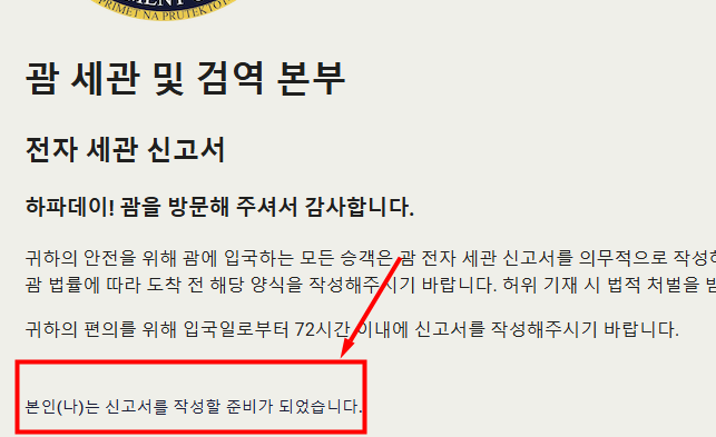 괌 전자세관신고서 웹사이트에 접속해 주세요.