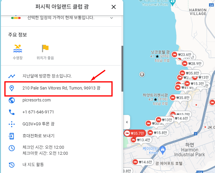 특히 괌 체류 시 주소 호텔명 넣을 때는 아래 구글 지도에서 복사해서 넣으시면 됩니다.