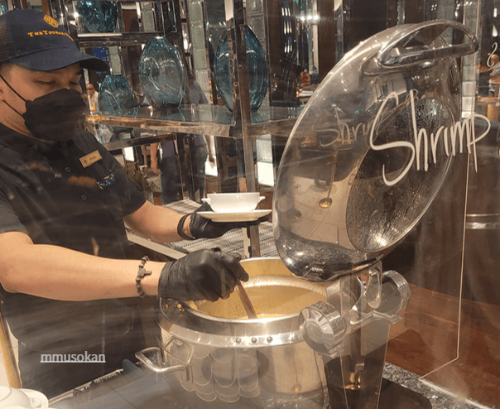 제가 갔을 때는 성수기이기도 했지만 시스템이 오래 걸릴 수밖에 없더라고요. 제가 직접 음식을 떠갈 수 있는 시스템이 아니라 해당 섹션에 가서 줄을 서서 직원분께 원하는 음식을 하나하나 얘기를 드리며 접시에 하나하나 담아주시는 방식이에요.