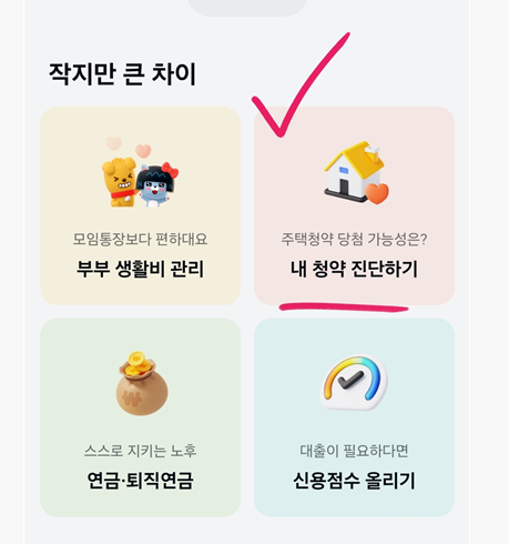 아래쪽으로 쭉 내려보면 내 청약 진단하기 탭이 보일꺼에요.