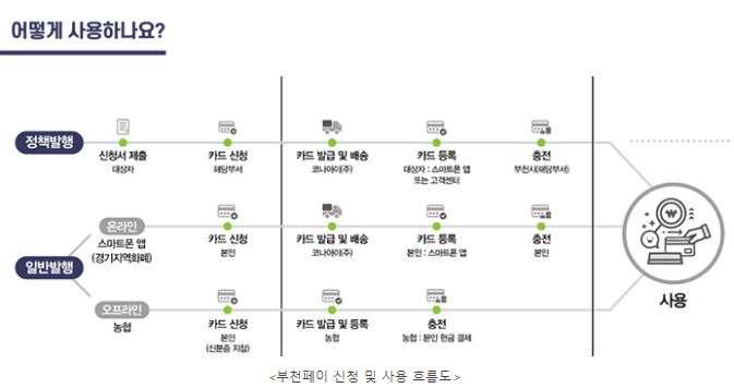 일반발행분은 경기지역화폐 어플을 이용하여 카드신청하고 받은 후에 카드정보를 등록하고 충전하여 사용하시면 됩니다.