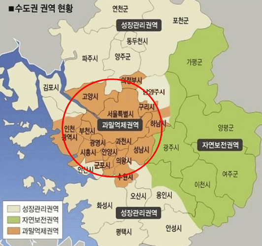 ✅ 서울, 인천, 남양주, 의정부, 구리, 고양, 수원, 성남, 안양 등등 수도권은 과밀억제권