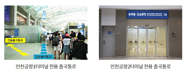 ✅ 도심공항터미널에서 출국심사 완료 시 인천공항 전용 출국통로를 이용하여 빠르고 편리하게 출국장으로 이동