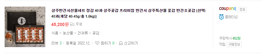여기서 주의할 점이 한 가지 있습니다. 저는 일단 곶감을 다 같이 먹으려고 30% 할인쿠폰 받아서 주문했는데 쿠폰은 1인당 한 장 나오네요. 아직 한도가 다 되지 않았는데 다른 상품주문하려고 보니 사용가능쿠폰이 없어서 배우자 명의로 다시 가입해서 주문해야겠습니다. 해당쇼핑몰에서는 쿠폰이 한 장 지원되니 참고해서 사용해 주세요.