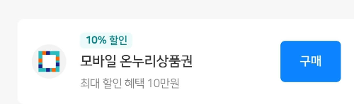 내용 : 온누리상품권 충전식 카드형 상품권과 모바일상품권 할인율이 기존 5%에서 10%로 높아집니다.