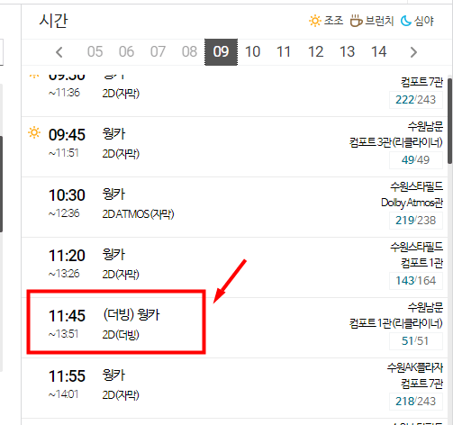 CGV 홈페이지나 모바일 어플에서도 더빙판은 더빙이라고 표시되어있으니 확인해보시고 생각보다 CGV에서 더빙관이 많이 없더라고요.