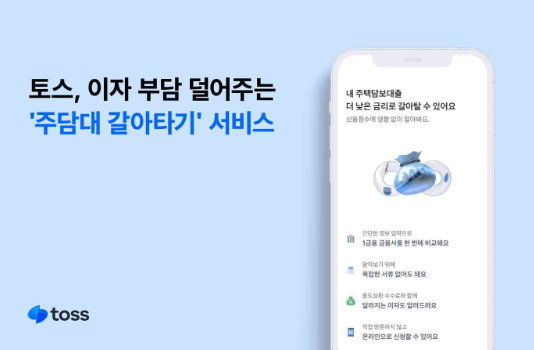 토스는 하나의 담보물에 대해 두 개의 대출 중 금리가 높은 대출만 갈아타는 서비스를 제공합니다. 이는 대부분의 대출 상품이 두 개의 대출을 하나로 통합하는 것과 달리, 토스만의 차별화된 서비스입니다.