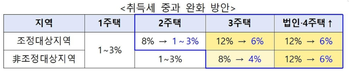 --> 다만 취득세 중과완화는 법률개정 사항이라 시행 여부는 아직 불투명합니다.