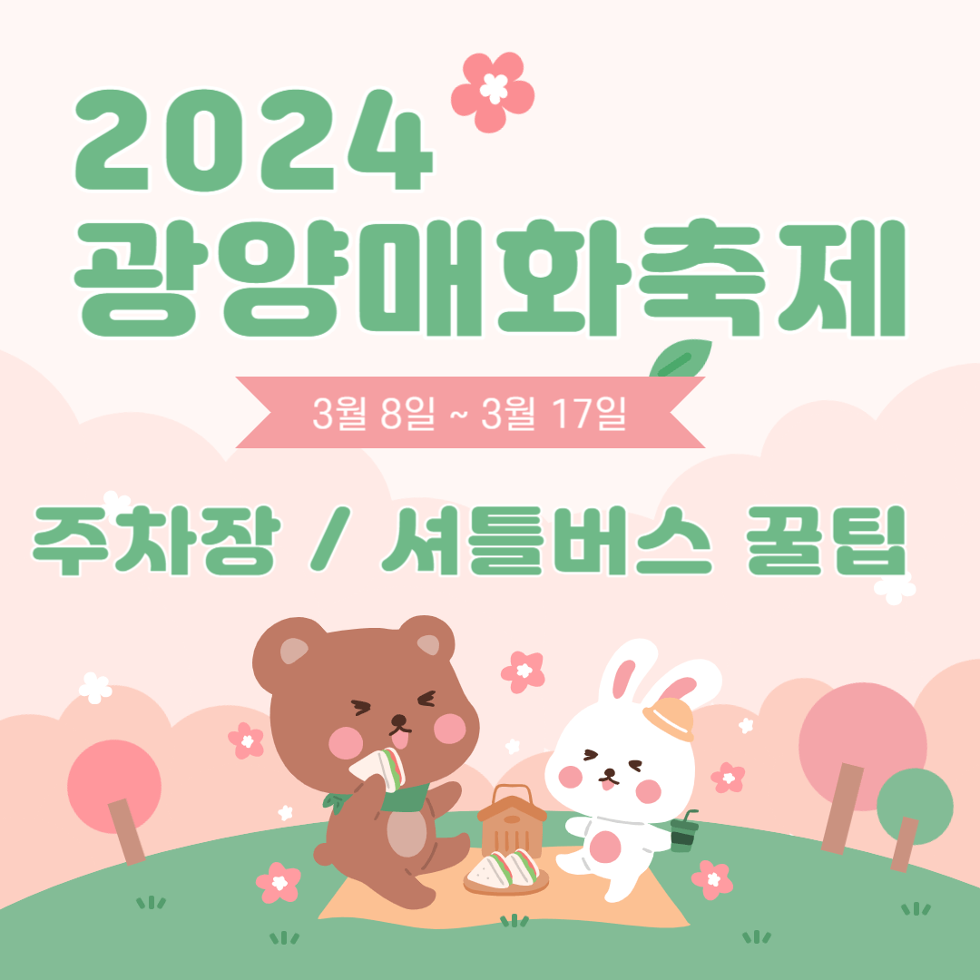 2024 광양매화축제 기간인 3월 8일부터 17일까지는 완전히 만개한 매화꽃으로 방문객을 맞이할 준비를 마쳤습니다. 올해처음으로 입장료가 생겼고 축제장 차량이 금지되어 셔틀버스이용방법 주차장 가는 법, 실시간 교통상황확인하는 방법까지 꼭 확인하고 가세요.