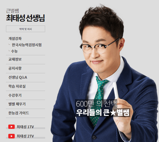 EBSi의 한국사 강사이며 1타 강사로 활약 중입니다. 공교육 교사의 아이콘이었다가 현재는 방송 활동 등도 같이 하고 이투스에서도 수업을 들을 수 있습니다. 별샘으로 많이 알려졌죠. 누적 수강생만 600600만 일 정도로 높은 인지도를 가진 역사 강사입니다.